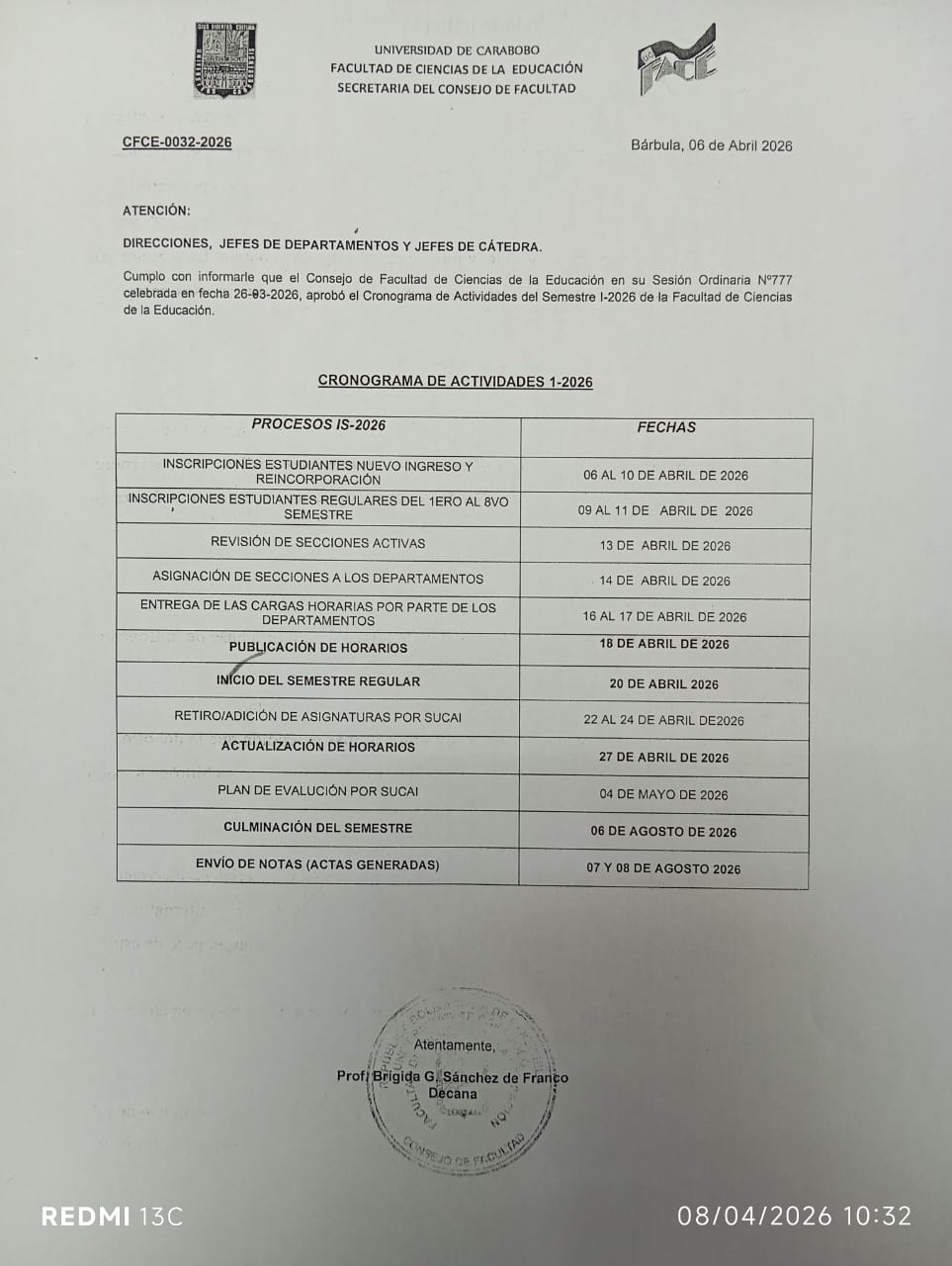 Estimados estudiantes la Facultad de Ciencias de la Educación, a través de la Dirección de Asuntos Estudiantiles les informa que la PUBLICACIÓN DE HORARIO se realizará en el transcurso del día 19-04-2025 y se les recuerda que el retiro y/o adición de unidades curriculares se efectuará a través de SUCAI los días martes 22 y miercoles 23 de abril de 2025.