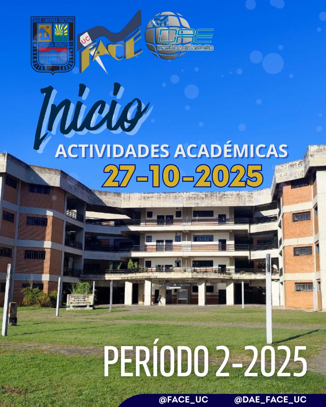 Se les recuerda a toda la Comunidad estudiantil de la FaCE que los trámites y procedimientos de índole académico deben ser solicitados y canalizados estrictamente a través de las oficinas de la Dirección de Asuntos Estudiantiles (DAE),daefaceuc@gmail.com