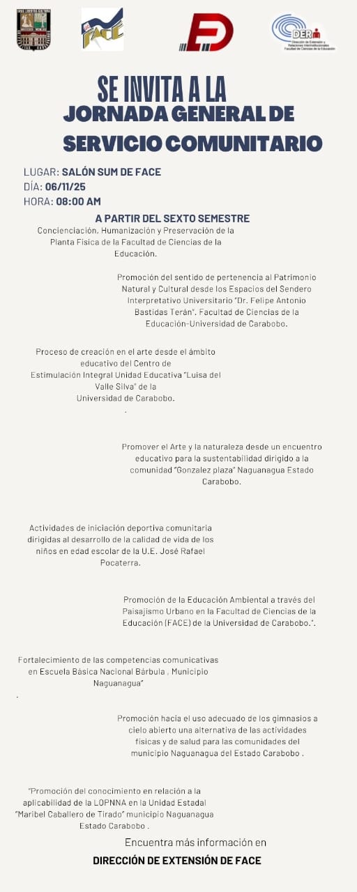 La Facultad de Ciencias de la Educación de la Universidad de Carabobo, invita a los estudiantes regulares a revisar la oferta académica de las diferentes unidades curriculares para el Periodo Académico de Prosecución (PAP) 2025, dentro de la página de nuestra facultad: